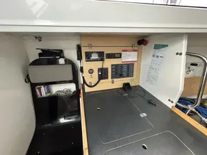 The interior is designed for comfort and functionality, accommodating up to six people. It includes two aft cabins, a saloon with two bench seats, a galley, and a separate head. The ergonomic cockpit design ensures easy and efficient handling, whether you choose the tiller or steering wheel version.